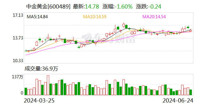 中金黄金6月24日大宗交易平台出现一笔成交,成交量265.00万股,成交金额3916.70万元,大宗交易成交价为14.78元。该笔交易的买方营业部为中信证券股份有限公司上海分公司,卖方营业部为中国国际金融股份有限公司深圳分公司。
